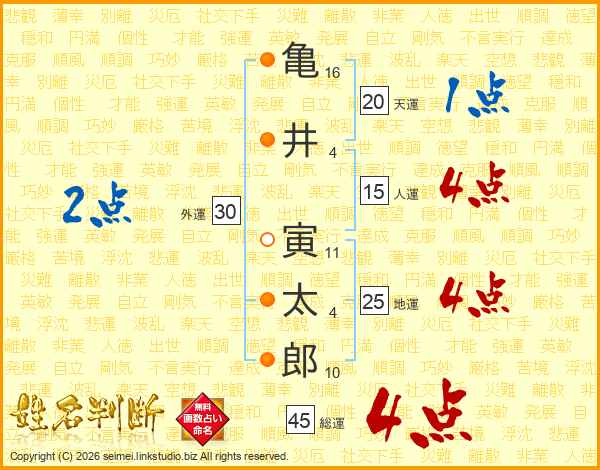 亀井寅太郎さんの総運は45画の4点!