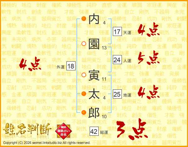内園寅太郎さんの総運は42画の3点!