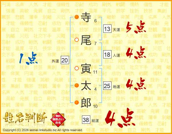 寺尾寅太郎さんの総運は38画の4点!