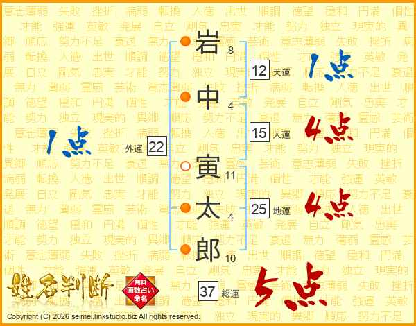 岩中寅太郎さんの総運は37画の5点!