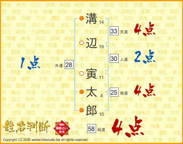 溝辺寅太郎さんの天運は33画の4点!