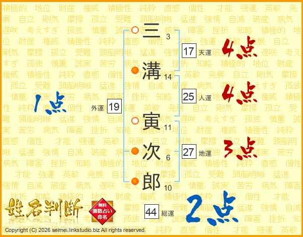 三溝寅次郎さんの天運は17画の4点!