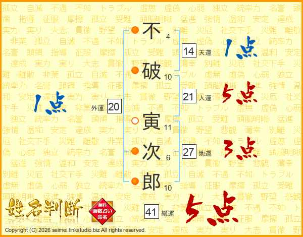 不破寅次郎さんの総運は41画の5点!