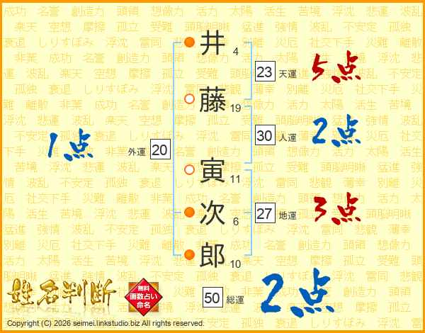 井藤寅次郎さんの天運は23画の5点!