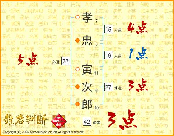 孝忠寅次郎さんの総運は42画の3点!