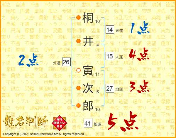 桐井寅次郎さんの総運は41画の5点!