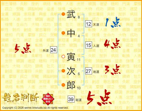 武中寅次郎さんの総運は39画の5点!