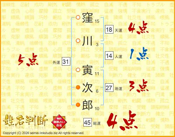 窪川寅次郎さんの総運は45画の4点!