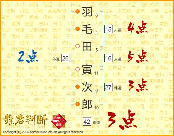 羽毛田寅次郎さんの総運は42画の3点!