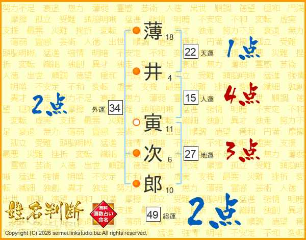 薄井寅次郎さんの総運は49画の2点!