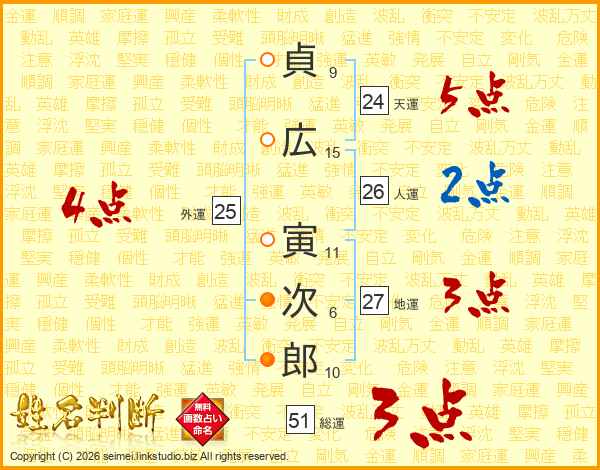 貞広寅次郎さんの総運は51画の3点!
