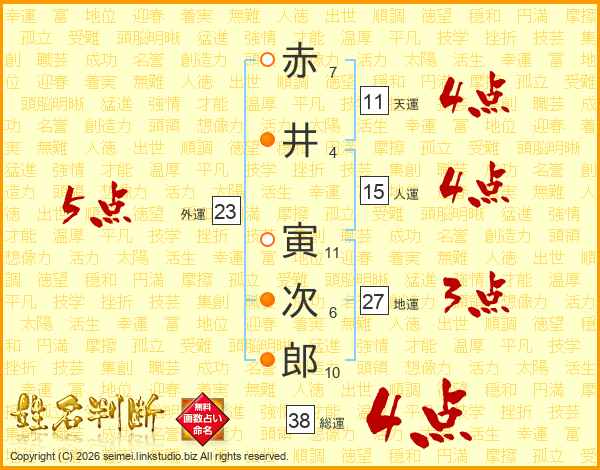 赤(7画)井(4画) 寅(11画)次(6画)郎(10画)