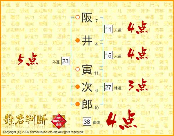 阪井寅次郎さんの総運は38画の4点!