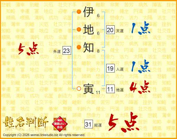 伊(6画)地(6画)知(8画) 寅(11画)