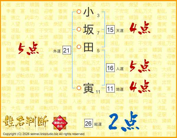 小坂田寅さんの総運は26画の2点!