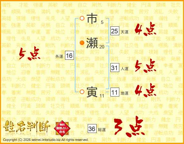 市瀬寅さんの人運は31画の5点!