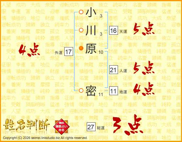 小川原密さんの総運は27画の3点!