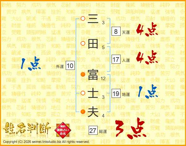三田富士夫さんの人運は17画の4点!