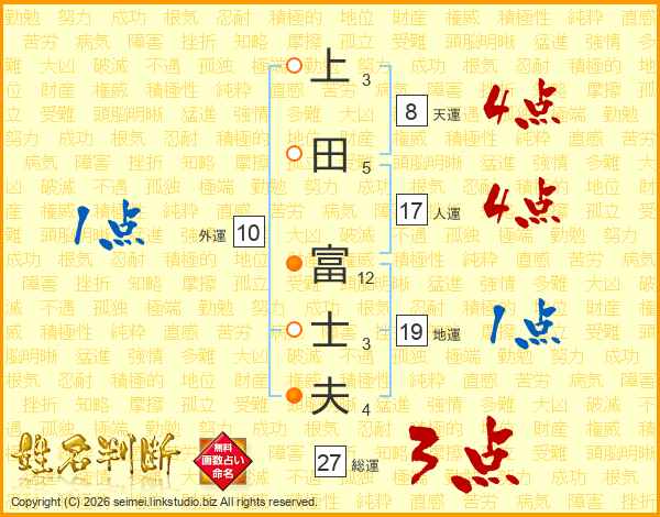 上(3画)田(5画) 富(12画)士(3画)夫(4画)