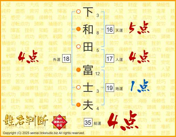下(3画)和(8画)田(5画) 富(12画)士(3画)夫(4画)