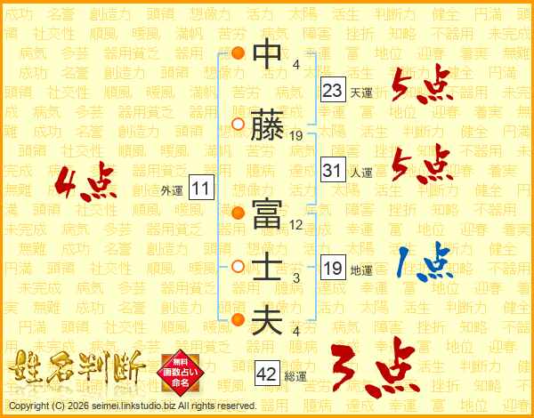 中(4画)藤(19画) 富(12画)士(3画)夫(4画)