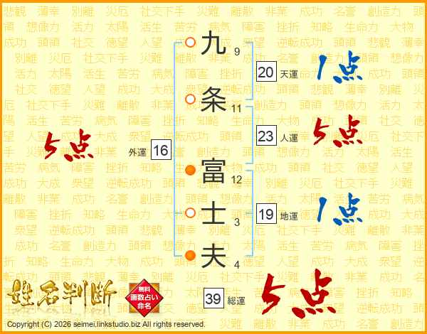 九(9画)条(11画) 富(12画)士(3画)夫(4画)