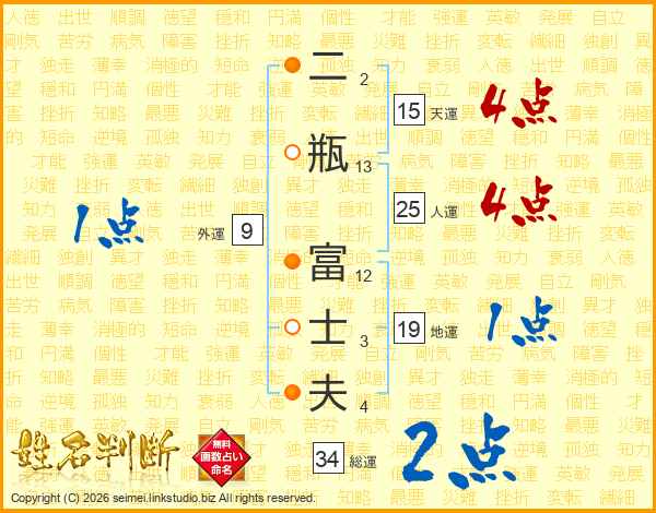 二瓶富士夫さんの人運は25画の4点!