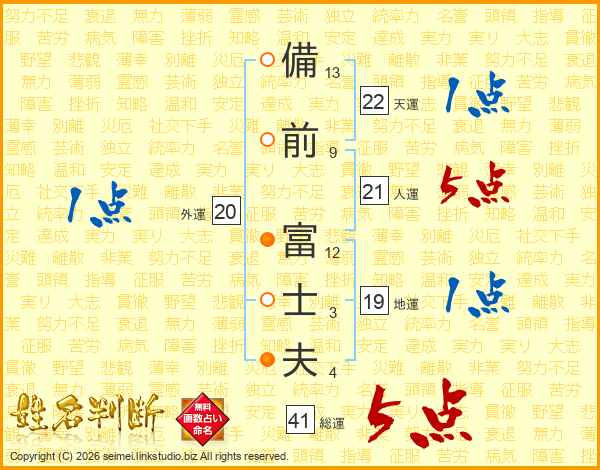備(13画)前(9画) 富(12画)士(3画)夫(4画)