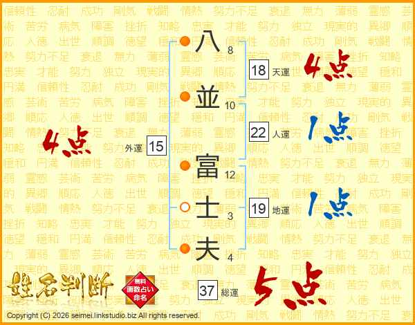 八(8画)並(10画) 富(12画)士(3画)夫(4画)