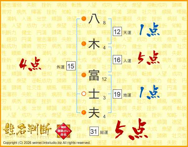 八木富士夫さんの総運は31画の5点!