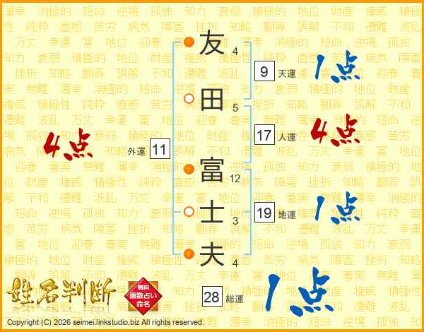 友田富士夫さんの人運は17画の4点!