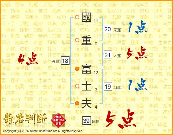 國重富士夫さんの人運は21画の5点!