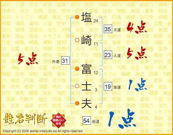 塩崎富士夫さんの天運は35画の4点!