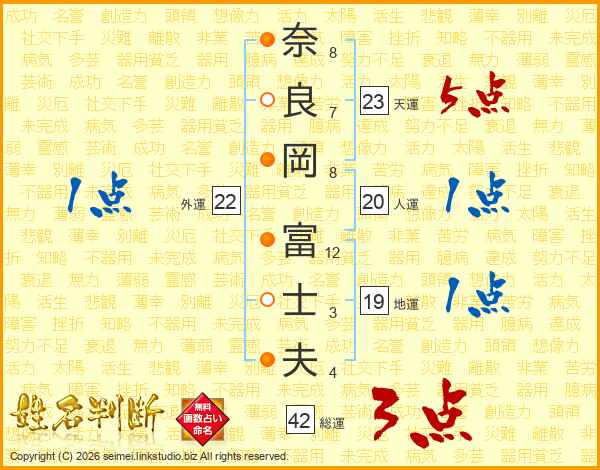 奈良岡富士夫さんの人運は20画の1点!