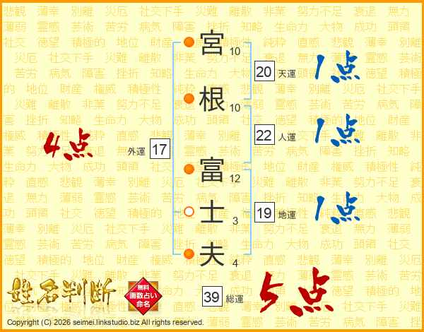 宮根富士夫さんの総運は39画の5点!