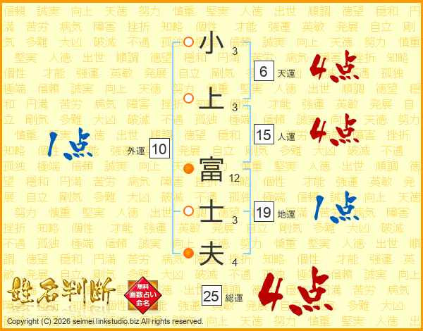 小上富士夫さんの総運は25画の4点!