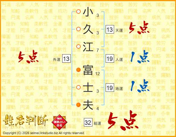 小久江富士夫さんの天運は13画の5点!