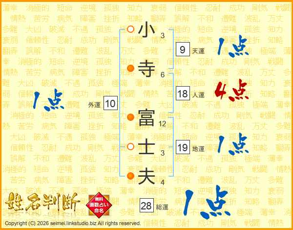 小寺富士夫さんの人運は18画の4点!