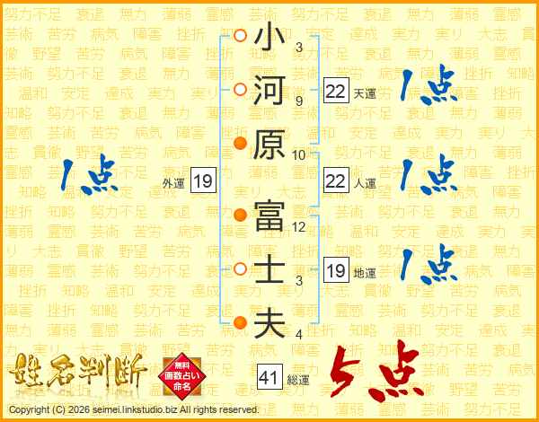 小河原富士夫さんの天運は22画の1点!