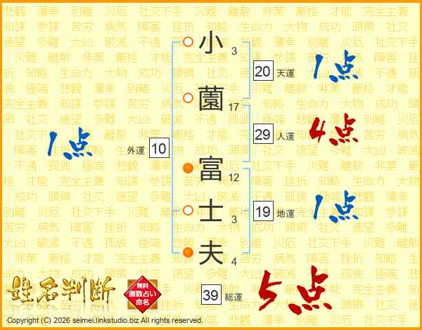 小薗富士夫さんの総運は39画の5点!