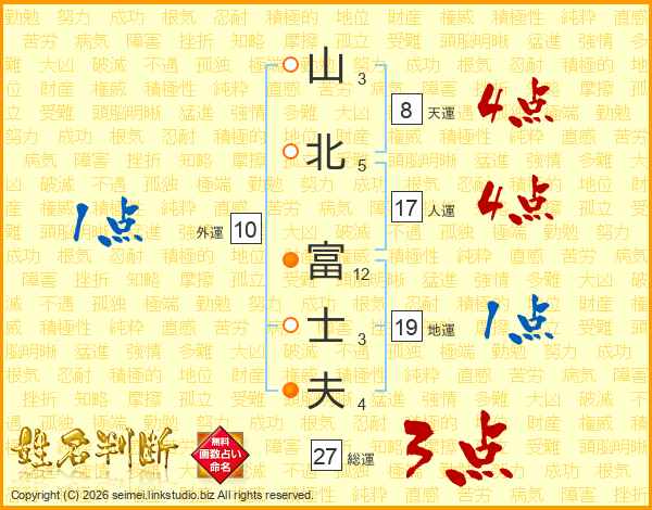 山北富士夫さんの天運は8画の4点!