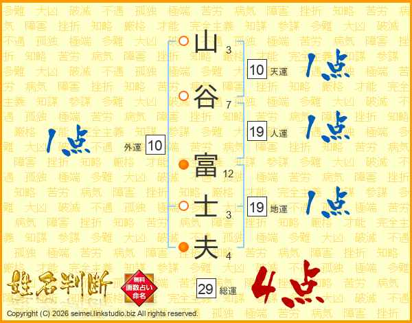 山谷富士夫さんの人運は19画の1点!