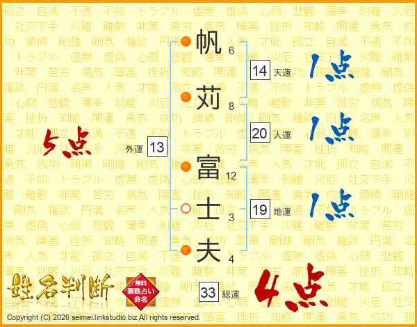 帆苅富士夫さんの総運は33画の4点!