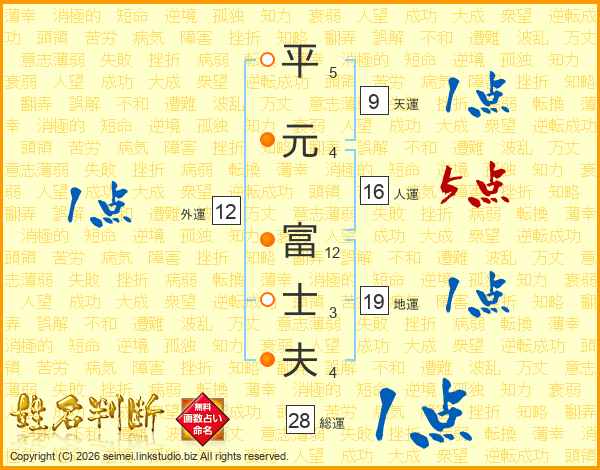 平元富士夫さんの人運は16画の5点!