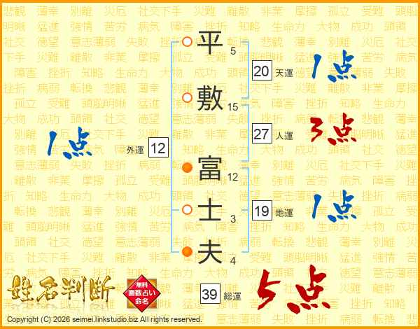 平敷富士夫さんの総運は39画の5点!