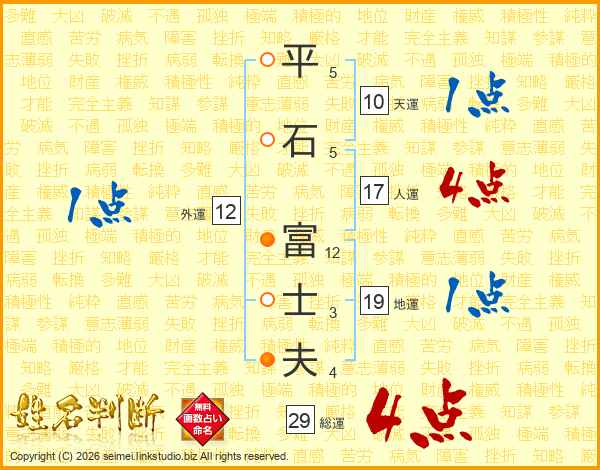 平(5画)石(5画) 富(12画)士(3画)夫(4画)