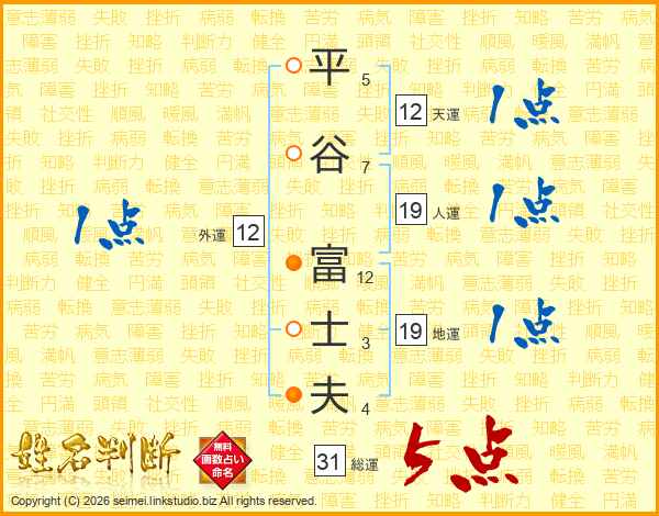 平谷富士夫さんの総運は31画の5点!