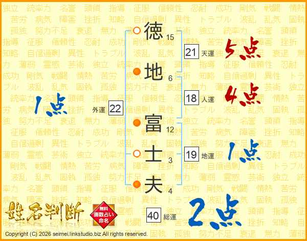 徳(15画)地(6画) 富(12画)士(3画)夫(4画)