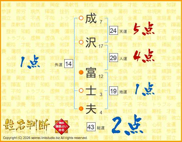 成(7画)沢(17画) 富(12画)士(3画)夫(4画)