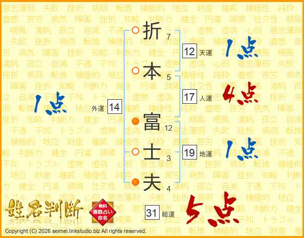 折(7画)本(5画) 富(12画)士(3画)夫(4画)